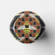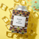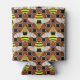 This cute pattern features a graphic motif of busy bees in black and yellow set against a stylized honeycomb design in warm orange and brown hues.