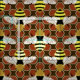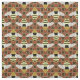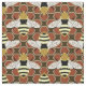 This cute pattern features a graphic motif of busy bees in black and yellow set against a stylized honeycomb design in warm orange and brown hues.