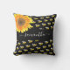 Bees black yellow sunflower name script outdoor pillow