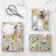 Bees Floral Wrapping Paper Flat Sheet Set of 3