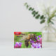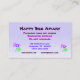 This business card is an advertisement for an apiary. It features a golden striped honeybee busily pollinating a purple verbena bonariensis blossom. The pollen is visible in the sac on his leg. A colorful red poppy flower and luminous green foliage add to the gorgeous, sunny summer feeling. All text can be customized to fit your personal business needs.