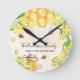 Cute bumble bees, yellow florals, and dripping honey from honeycomb. Personalize and add your name and the name of your summer vacation home, cottage. Golden numbers. This clock is also available in our store with black numbers.