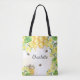 Bees honey yellow florals monogram name tote bag