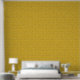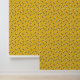 This sweet bee pattern wallpaper shows an original design of honeybees over a light, bright golden-yellow honeycomb background. The yellow and black bees have gossamer white-blue wings. They're crawling over the honeycomb inside their beehive.