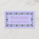Decorative border of colorful honey bees and flowers surrounding your business name and contact information, with detailed product information or hours of operation on the back. Designed to match our "Bees in the Backyard" honey jar labels with the same design for a beekeeper, farmer or any company. Choose a different "Design Theme" to change the lavender blue background on the front and back. © dotpattern