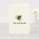Designed with a pale cream background, this card centers on a fluffy, human-like striped insect hovering in midair, its soft black and golden-yellow bands suggesting a busy pollinator. Subtle white fur highlights give it a plush look, while translucent wings stretch outward as if it’s drifting closer for a gentle hello. The large dark eyes and slim antennae create a sweet, friendly expression, like it’s sharing a private joke with Mum ❤️. Below the insect, the text reads “YOU’RE THE BEES KNEES MUM!” in a casual handwritten-style font, set in dark lettering that stands out clearly. The words sit neatly under the character, leaving plenty of open space so the message feels direct and easy to read. The simple layout keeps the focus on the affectionate little flyer and its warm, teasing compliment, with a light, sunny feel 🌼. The insect’s wings are lightly shaded and slightly see-through against the cream backdrop.
