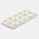 This charming magnetic notepad design features a delightful scattering of stylized daisies in soft white with sunny yellow centers. Playful bumblebees, rendered in cheerful yellow and black stripes with delicate white wings, buzz around the blossoms. Tiny yellow dots are sprinkled across the gentle gray background, adding a touch of whimsical sweetness to the overall design. Perfect for adding a touch of springtime joy to your fridge.