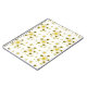 This charming notebook features a delightful scattering of stylized daisies in soft white with sunny yellow centers. Playful bumblebees, rendered in cheerful yellow and black stripes with delicate white wings, buzz around the blossoms. Tiny yellow dots are sprinkled across the gentle gray background, adding a touch of whimsical sweetness to the overall design.