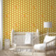 Scattering of Bees on honeycomb pattern in apricot yellow tones