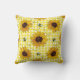 Bees, sunflowers, checkered, vintage pattern. throw pillow