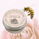 These 1.5" beewax lip balm labels fit top of a 0.5 oz screw lid metal tin. Central design features a vintage skep hive illustration with wildflowers and little bees scattered around the label. Personalize with your apiary name, address and product description (i.e., mango.) Also include your product weight. Happy Beekeeping!