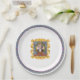 Celebrate Beethoven! From an original artwork series by ZoeSPEAK of classical music collectors plates, these Paper Plates feature a portrait of the composer Ludwig van Beethoven. The portrait is a hand tinted etching, surrounded by an illustration of an ornate oval golden frame. The frame is on a wallpaper background of yellow suns and uplifting winged spirits against a medium blue. Under the portrait, in red, is the composer's name. The wallpaper is surrounded by more gold ribbons, in the center of the plate against a white background. There is a medium blue band with winged spirits and a red border around the edge of the plate.