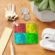 Beethoven portrait in red, yellow, blue and green squares. Image with carved effect applied to design.