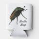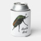You can change the background color and change the text on this can insulator sleeve. The image is derived from my original acrylic painting, Beetle on a Pier.