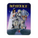 The classic theatrical poster art for Beetlejuice, featuring him sitting atop a house with Barbara and Adam Maitland as the Deetz family approach the house.