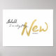 Beautiful Calligraphic Typography Design with words in watercolor gold paint effect and black, "Behold I am making all things new." Bible Scripture verse is from Revelation 21:5