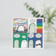Craft supplies make me happy! This card shows a fluffy cartoon Little Niddle surrounded by an abundance of rainbow-colored craft supplies. It says "Behold -- my collection of craft supplies!" When another Niddle asks what you do with them, the first Niddle replies "I enjoy the possibilities!" The design is adapted from my online comic strip Little Niddles.