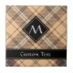 Beige and brown tartan design. Seamless pattern. Custom text and monogram.
