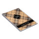 Beige and brown tartan design. Seamless pattern. Custom text and monogram.