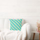 This throw pillow design features stripes colored beige and dark turquoise.