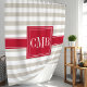 Beige and Red Stripes Monogram Shower Curtain