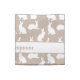 Destei's cute pattern design featuring white bunnies in various poses on a beige background. There is also a personalizable text area for a name. This design is ideal for Easter, for example.