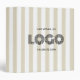Beige and White Classic Stripe Logo 3 Ring Binder