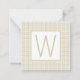 These cute gingham plaid small monogrammed note cards in classic shades of soft beige and white can be personalized with your choice of initial on the front and name or special text on the back.