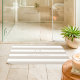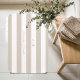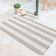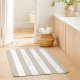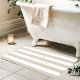 Add a touch of personalized elegance to your bathroom with this beige and white striped bath mat. This design features wide, horizontal stripes in a classic color combination, offering space for a custom monogram. This plush and absorbent product is visually appealing and provides a comfortable and safe surface. Enhance your home with this stylish and preppy accent.