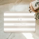 Beige and White Wide Stripes Monogram Name Bath Mat