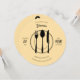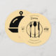 Elegant custom round dinner invitation featuring a beige background with stylish black text. Adorned with charming illustrations of a spoon, fork, knife, plate, and covered food in the background, perfect for sophisticated events and special gatherings. Make your invitation stand out with this refined design.