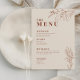 This menu is characterized by boho style, floral artwork, neutral earthy, and beige colors, with a mix of different font styles, often in different sizes, to create a unique, eclectic look that makes these menus a natural aesthetic.