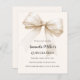 A soft beige, cream colored background, decorated with a large bow. Personalize and add a name and party details.