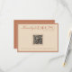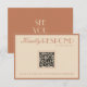 A classy and elegant calligraphy beige and bronzer retro old money boho terracotta QR code wedding rsvp card. That has a vintage and modern beige old money cream background with clay bronzer script and rust hand written whimsical stylish wording. Luxurious and chic with handwritten lettering and scannable QR code in the center. It is all editable by clicking on the personalize button.