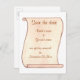 Announce the wedding date ahead of time with a brown and beige Scroll, on Save the date, postcard announcements. Customize with the names and date on the template forms. Can also customize with a different font, font color, and or font size. Note that there are brown and pink, and brown and beige options.