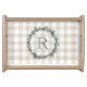 Beige Buffalo Check Botanical Wreath Initial Wood Serving Tray