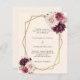 For an elegant and romantic wedding. A soft beige, cream colored background decorated soft blush beige and burgundy florals, flowers. A faux gold geometric frame. Personalize and add your names and details.