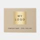 A classic beige background color, black text. Personalize and add your business logo, a text (or delete if not wanted)