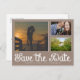 Customize this stylish Fun Modern horizontal Save the Date wedding postcard designed with white chalk style text on neutral beige brown. Replace the three template images collage with your favorite 3 photos and change all the template information on both sides with your own. This design has a wording: "We're getting married! (With your date of marriage) And would love for you to save the date to be able to share in our special day. Formal invitation to follow." you can change the words with your own. *Photo template credits: Photo 1: © by StephaniePetraPhoto; photo 2: © by Sean McGrath; photo 3: © by Tabitha Blue.