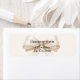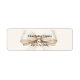 A beige, cream colored background decorated with a large bow. Personalize and add your name and address. Black letters.