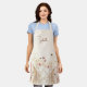 A boho style apron. A beige, cream colored background. Decorated with watercolored pink wildflowers and bees. Personalize and add your name.