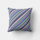 This throw pillow design features a pattern of stripes having colors like beige, dark slate blue, light green, and slate blue.