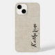 Beige Faux Linen Texture Custom Monogram Case-Mate iPhone Case