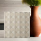 Circles in beige seem to float on a sculpted stripe background on this tile. Original design by international generative artist Judi Suni Hall for Gingezel.