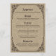 Here are Gothic Victorian inspired wedding menu cards in beige featuring ornaments, scrolls, scroll work, a banner, a floral scroll frame, damask pattern background, and other old world style details all inspired by the Gothic medieval period and Victorian era. Elegance and refinement at its finest. You can customize the sample text fields to your liking.