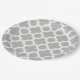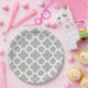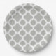 Beige Gray White Retro Ikat Quatrefoil Pattern Paper Plates