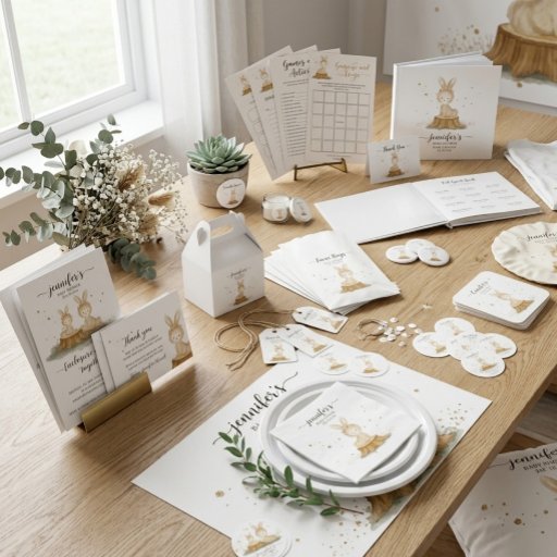 Beige Heart Cute Baby Bunny Rabbit Thank You