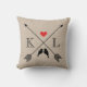 Personalized beige, black and red pillow customized with the couple's initials. A neutral beige shade that looks good on most colors and home decor styles. Would make a great gift for anniversary, wedding, bridal shower, new home or other occasion!