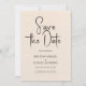 Whimsical minimalistic modern, customizable black script typography, elegant save-the-date invitation. The light beige color printed linen texture background adds a touch of organic feel of classic elegance. Other colors are available.