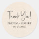 Whimsical minimalistic modern, customizable script typography, welcome wedding gift sticker. The light beige linen printed texture background adds a touch of organic feel of classic elegance. Other colors are available.